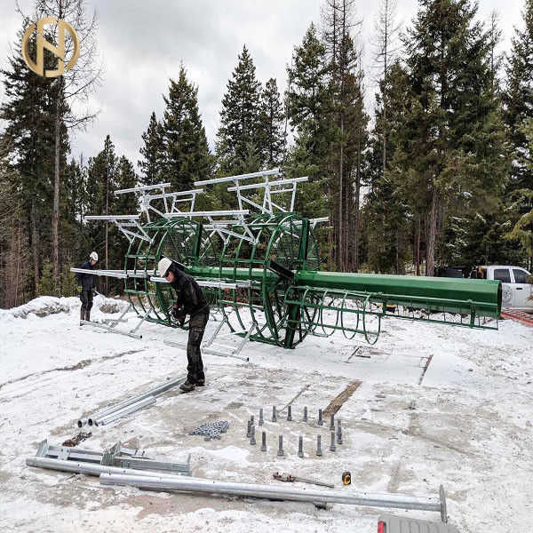 We pack the top and bottom parts of the pole with a mat or straw bale in order to protect it from damage to the galvanized surface that may