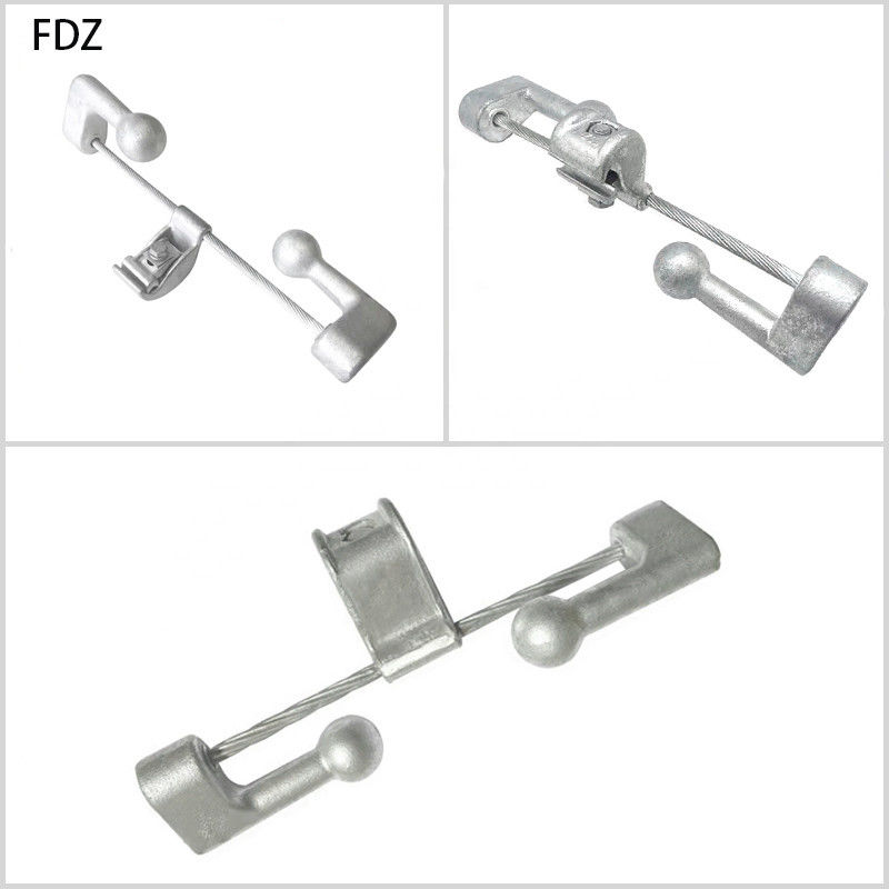 FD Vibration Damper belongs to protective fitting. The counter weight piece of FD damper is grey cast iron, painted. The other parts of FD vibration damper are hot dip galvanized steel. The clamp of FD vibration damper is forged aluminium alloy. Preformed FD damper eliminates the shortcomings of bolts fixed dampers, installed preformed damper, do not need hand tools to complete the task, easy installation, quick, low and cost construction.