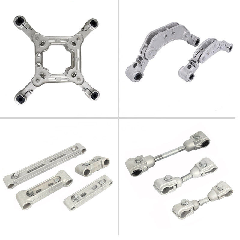 The clamps and bracket are made of alloy aluminium dampers are made of elastomer.